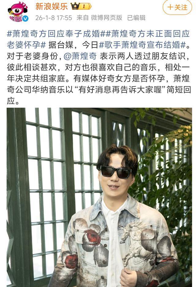 台媒猜测两人可能是奉子成婚,萧煌奇方经纪公司华纳音乐回应的时候没有正面承认或者否认他老婆怀孕,只说有好消息会再对外公开。一般这种回答多半是真的,看来离当爸爸也不远了。