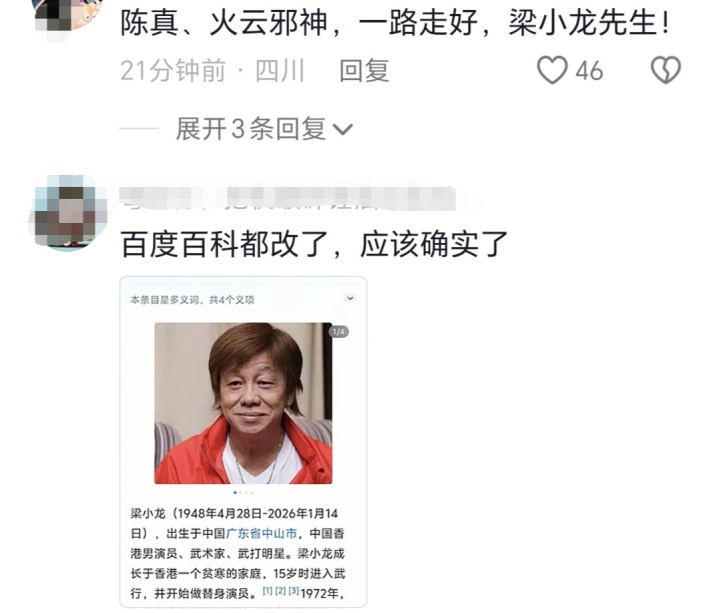 其中,有一位网友表示,在元旦的时候还见过他,看起来身体挺好的。